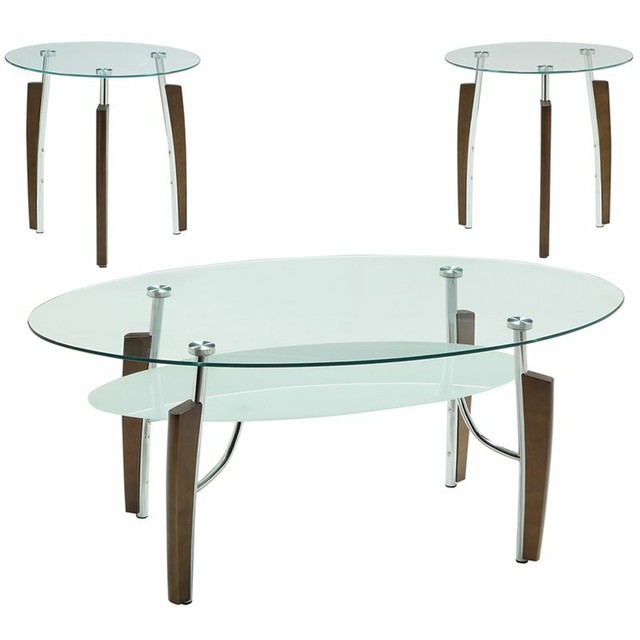 Bowery Hill 3 Piece Glass Top Coffee Table Set In Cappuccino For