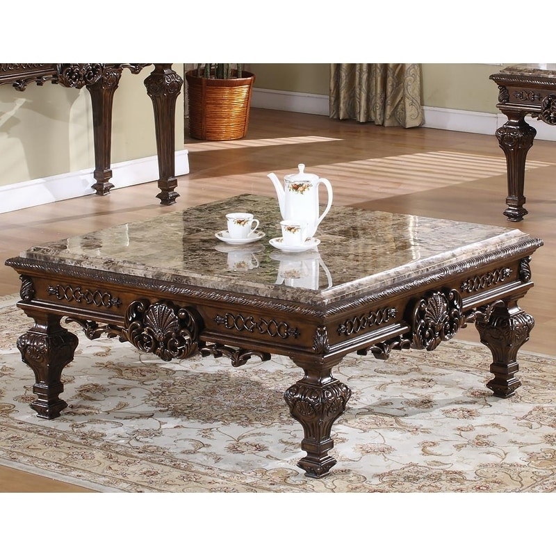 Best Master Cherry Finish Wood And Marble Top Coffee Table