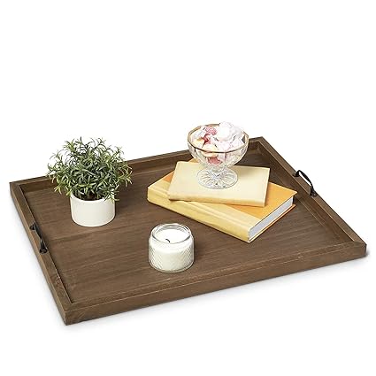 Buy Large Wood Ottoman Serving Tray W Handles Decorative Centerpiece Coffee Table Decor Dinner Food Bar Trays Modern Dining Room Living Kitchen Server Centerpieces Extra Large Online At Low Prices In India
