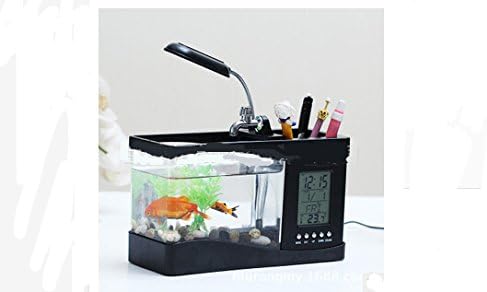 Usb Desktop Tiny Aquarium Fish Tank W Lcd Clock Led Light Holds