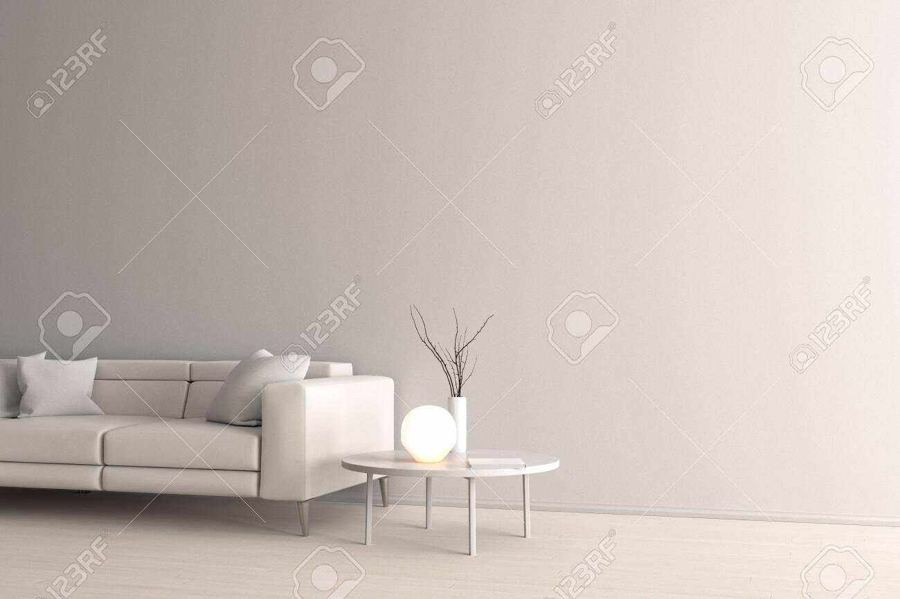 Minimalistic Living Room Interior White Walls Wooden Floor Leather