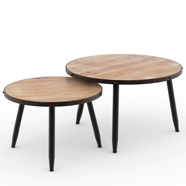 Tribesigns Industrial Nesting Coffee Table Set Of 2 Round End