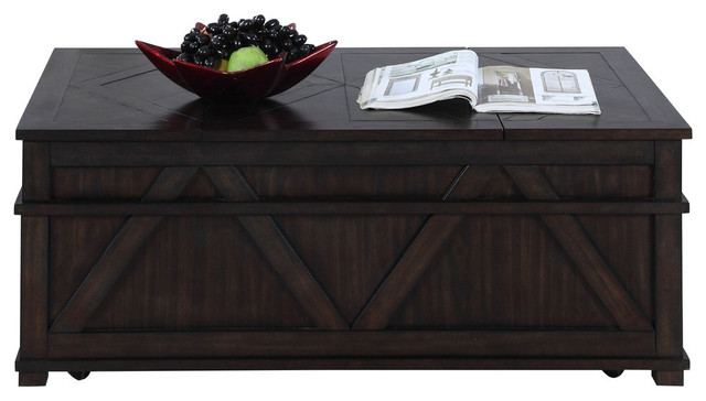 Black Brown Lift Top Storage Cocktail Table