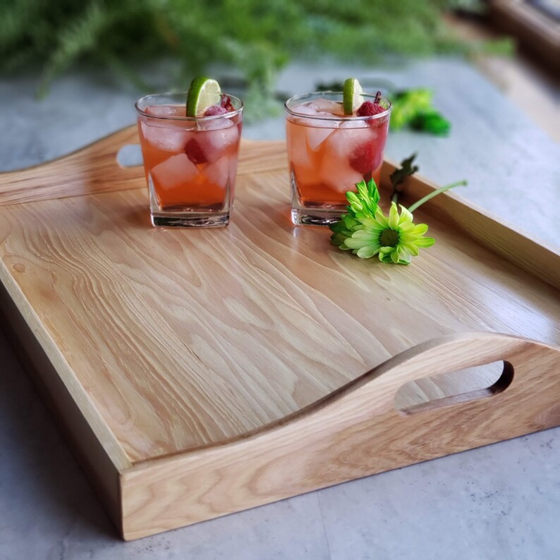 Flat Wood Tray With Handles Serving Tray Coffee Table Ottoman