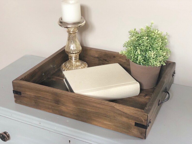Rustic Wood Tray With Handles Serving Tray Coffee Table Etsy
