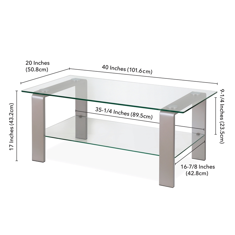 Henn Hart Metal 17 Glass And Nickel Gray Coffee Table Ct0095