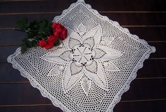Hand Crochet Pattern Square Coffee Table Topper Nightstand Cover