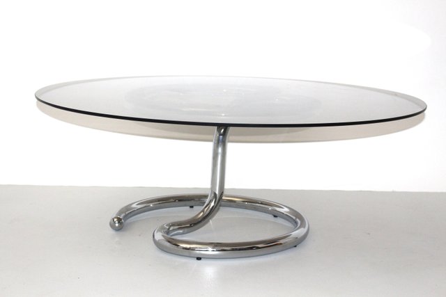 Vintage Curved Chromed Glass Coffee Table For Sale At Pamono