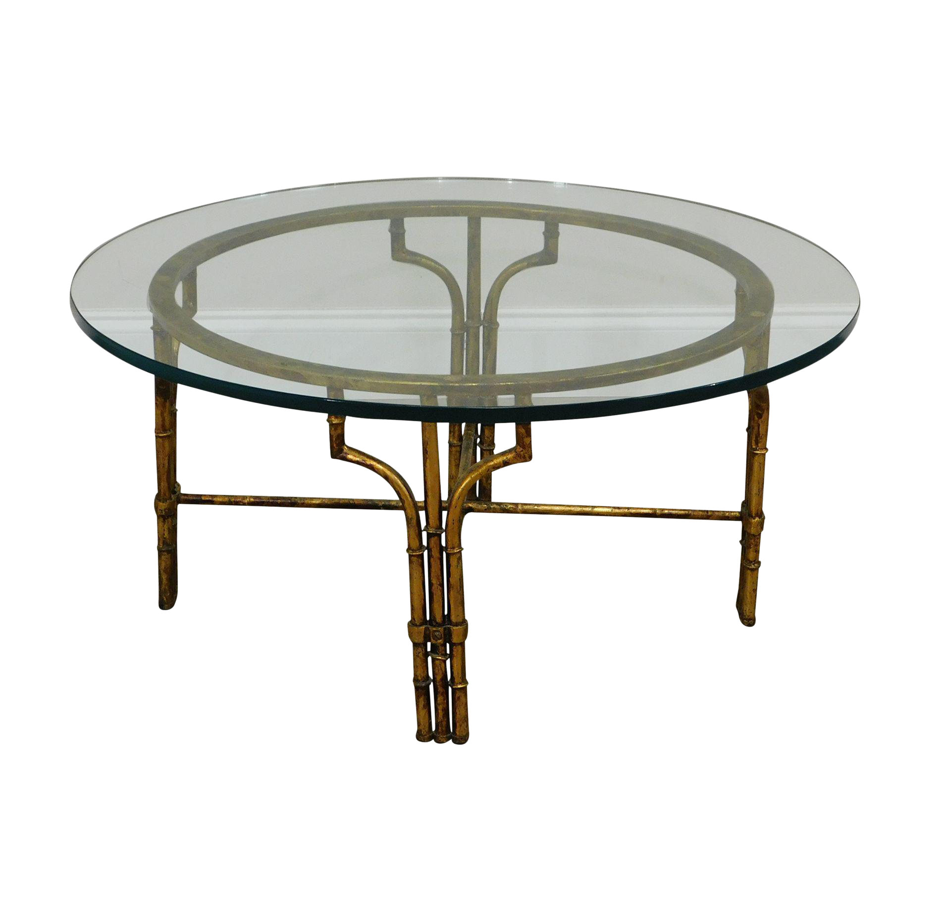 Faux Bamboo Gilt Metal Base Round Glass Top Coffee Table Chairish