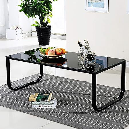 Ofcasa Black Glass Coffee Table End Side Table With Metal Legs