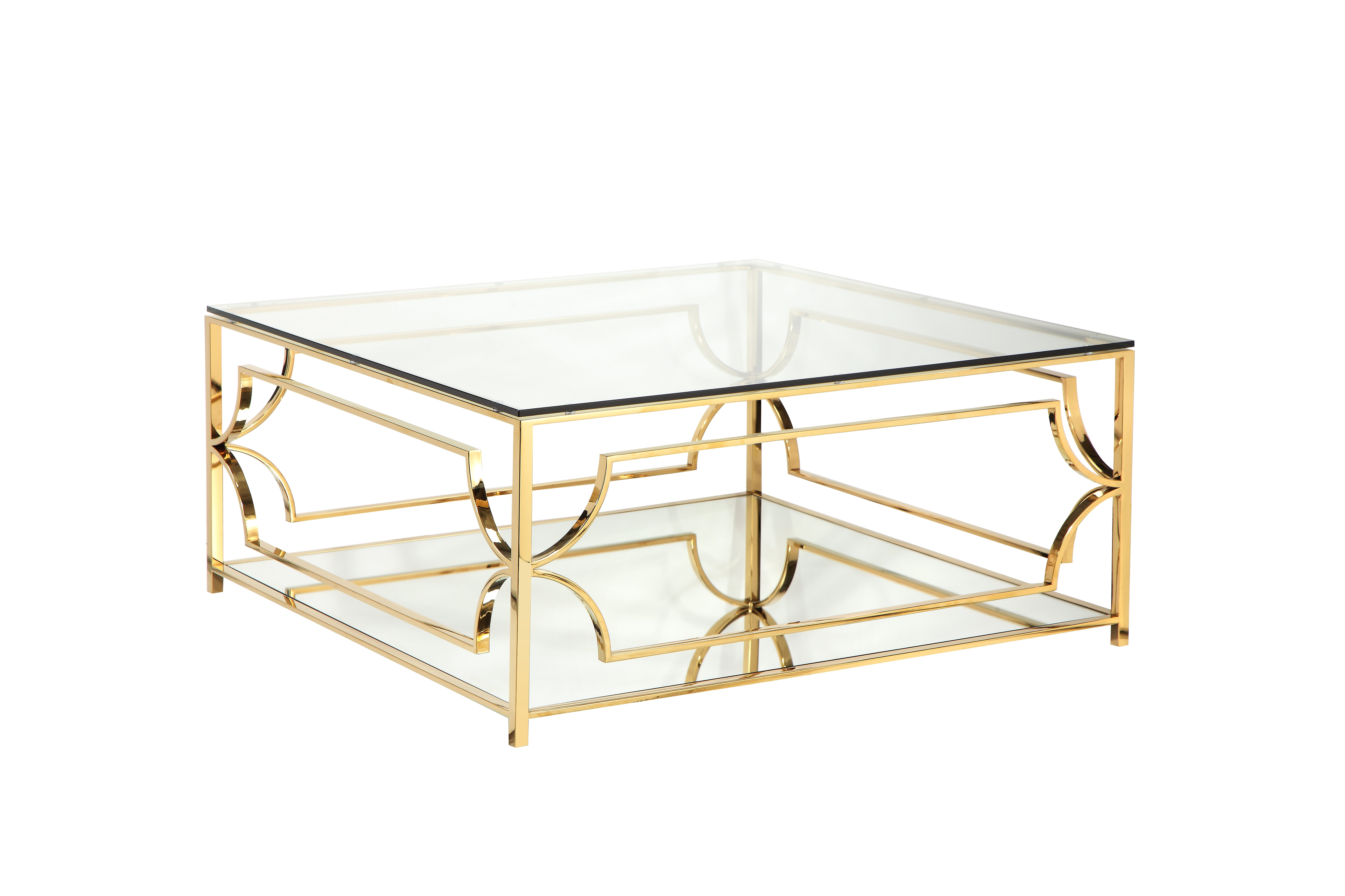 Rectangular Crystal Glass Coffee Table With Shelf Glassdomain