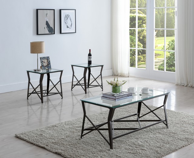 Monarch 3 Pc Metal Coffee Table Set W Glass Top By Crown Mark