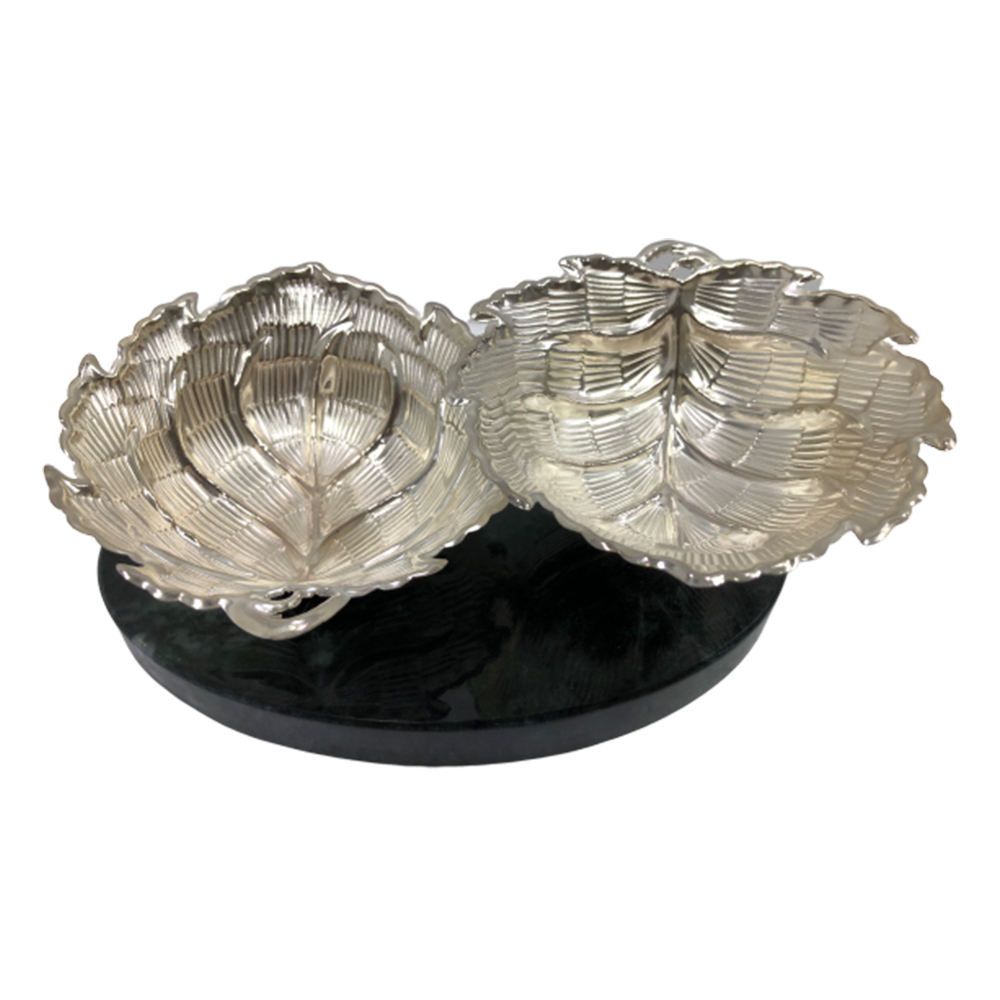Sterling Silver Decorative Double Leaf Bowl With Marble Base Buy