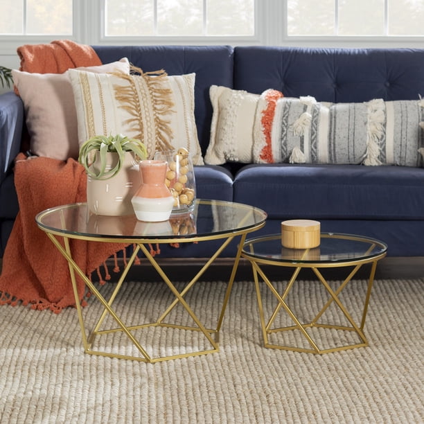 Amazon Com We Furniture Geometric Glass Nesting Coffee Tables