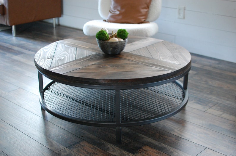 Industrial Round Wood Coffee Table Two Tier Table Wood Etsy