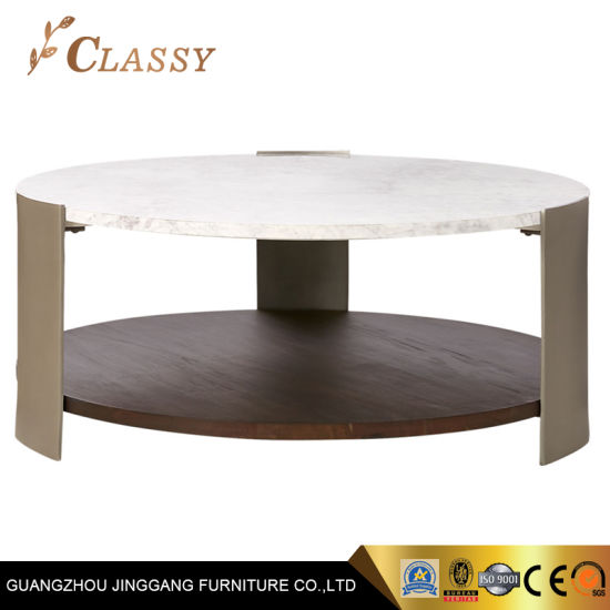 China Wood Bottom Venner Finish Coffee Table In Marble Top Metal