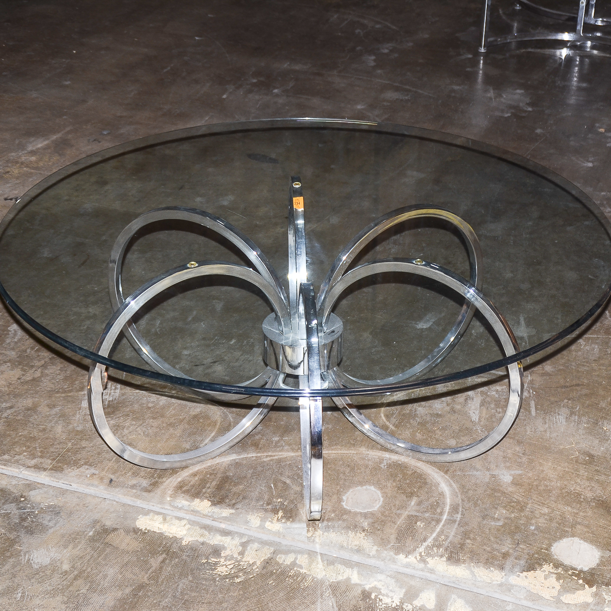 Mid Century Modern Glass And Chrome Coffee Table Ebth