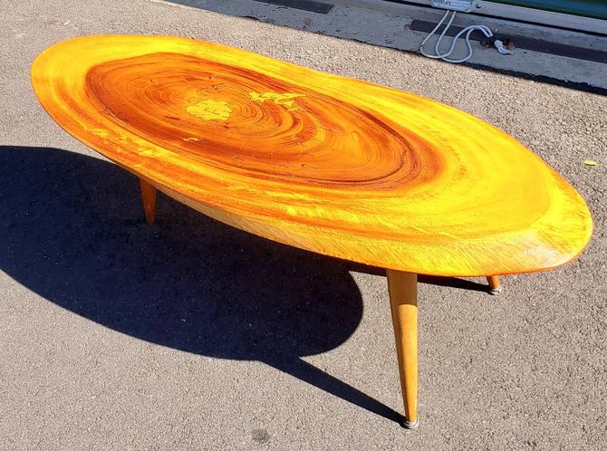 Vintage Mid Century Modern Monkey Pod Wood Map Coffee Table 1960