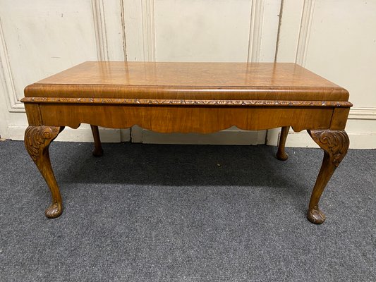 Vintage Queen Anne Style Burl Walnut Coffee Table 1920s For Sale