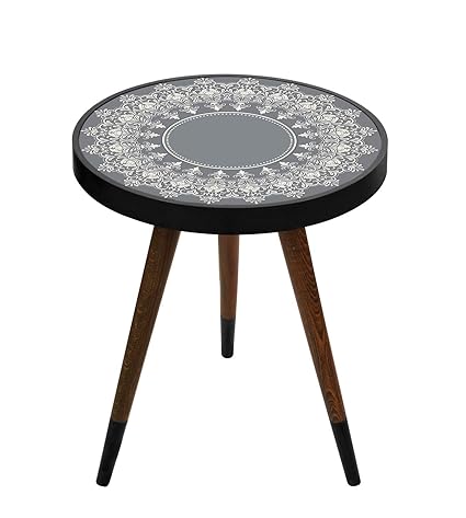Inbox Multi Colour Round Side End Coffee Table Wood Printed Top