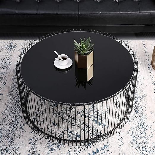 Njyt End Tables Round Coffee Side Table Black Glass And Metal