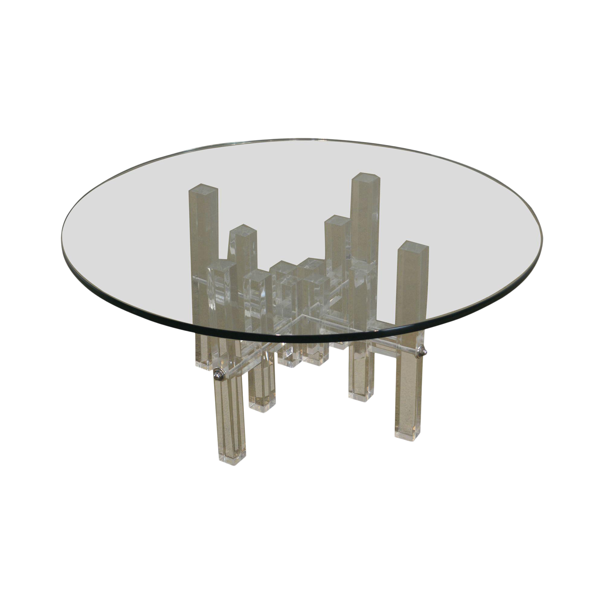 City Scape Mid Century Modern Lucite Base Round Glass Top Coffee