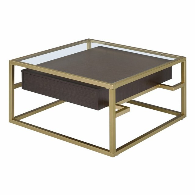 Acme Penstemon 39 Square Glass Top Coffee Table In Gold 80095