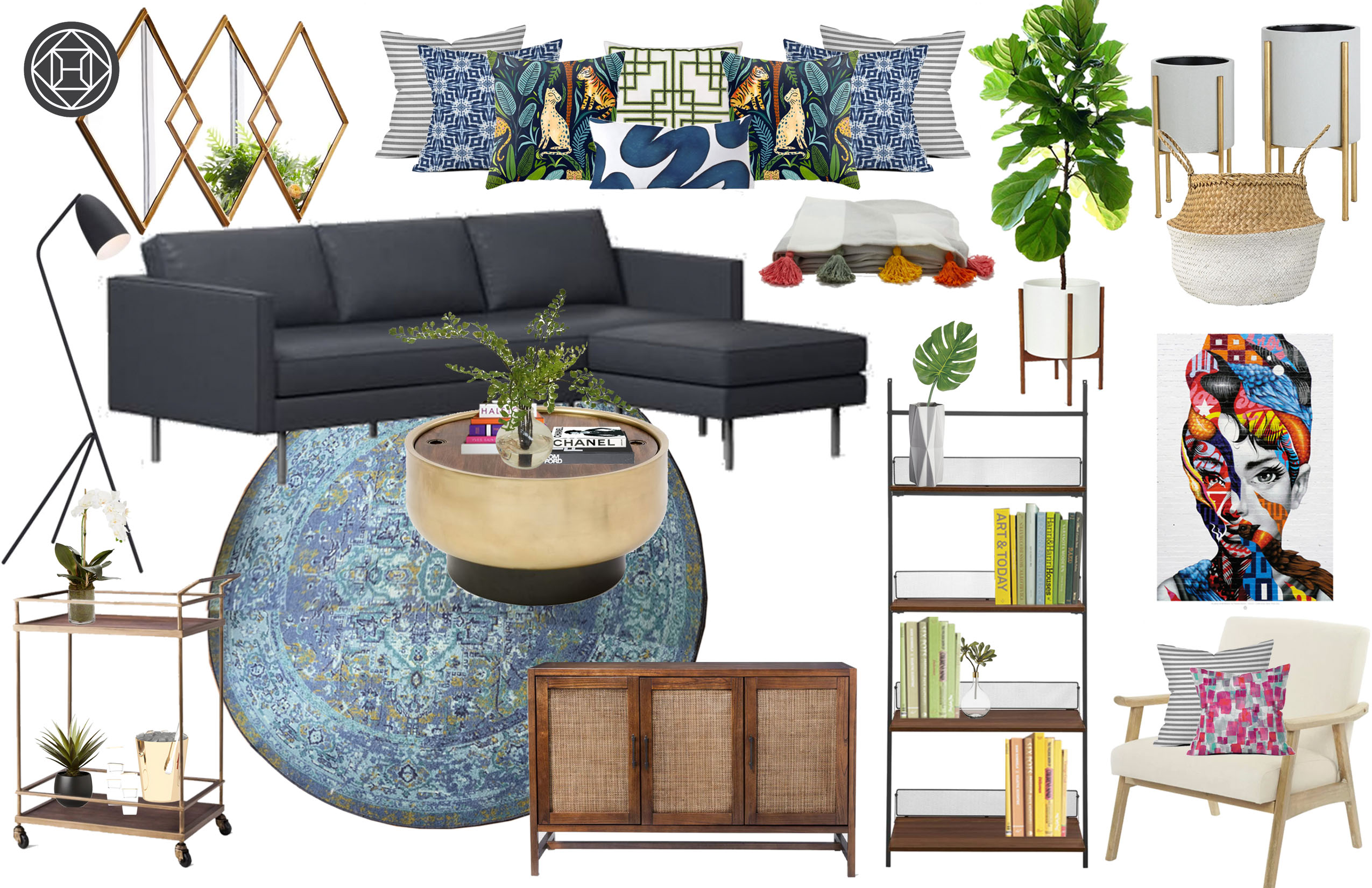 Contemporary Eclectic Midcentury Modern Living Room Design By