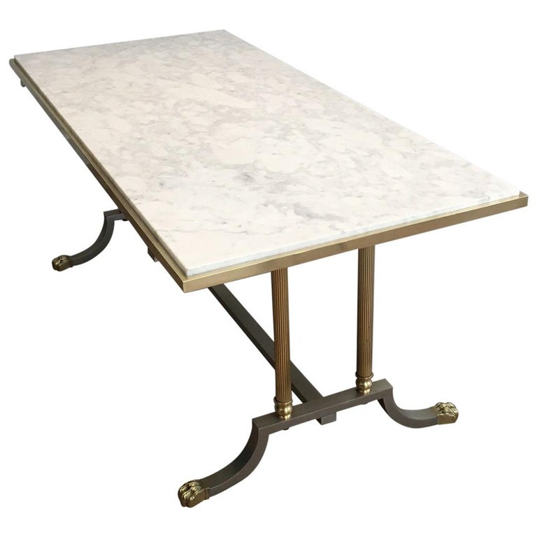 Brushed Steel And Brass Lion Feet Coffee Table With White Marble