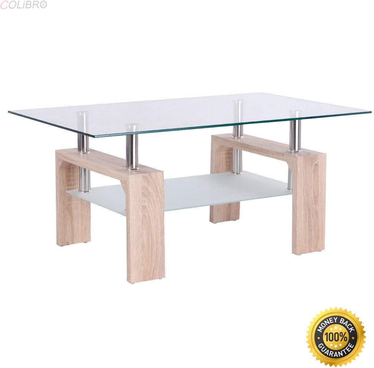 Amazon Com Colibrox Rectangular Glass Coffee Table Wood W Shelf