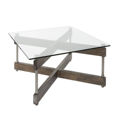 Garth Glass And Wood X Frame Square Coffee Table Brown